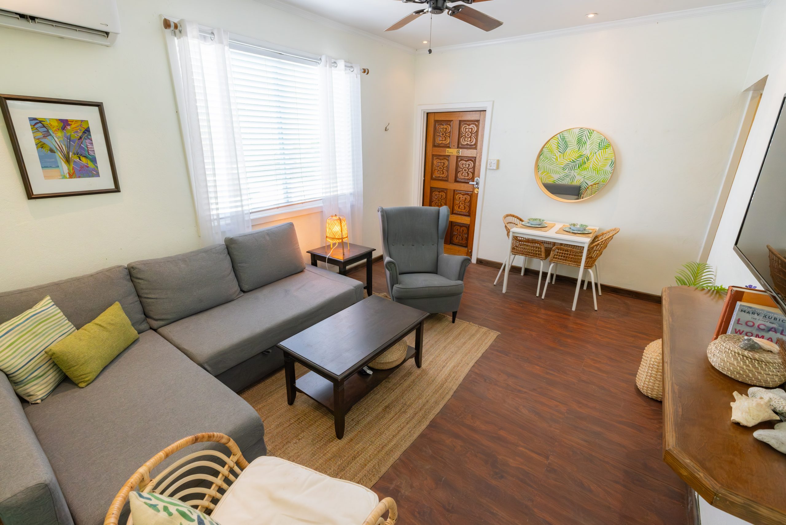 One bedroom. Full living area with flat screen tv and sofa. Fully equipped kitchen. Waterviews. Approximately 400 s.f.